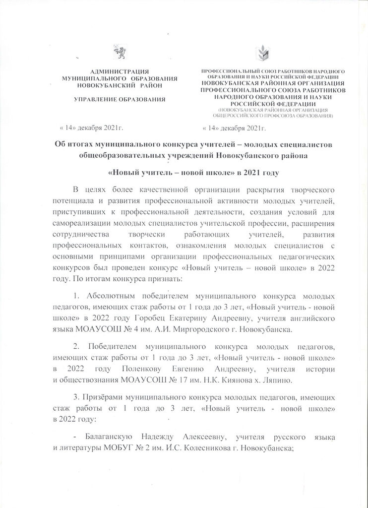«НОВЫЙ УЧИТЕЛЬ – НОВОЙ ШКОЛЕ» 2021 ГОД