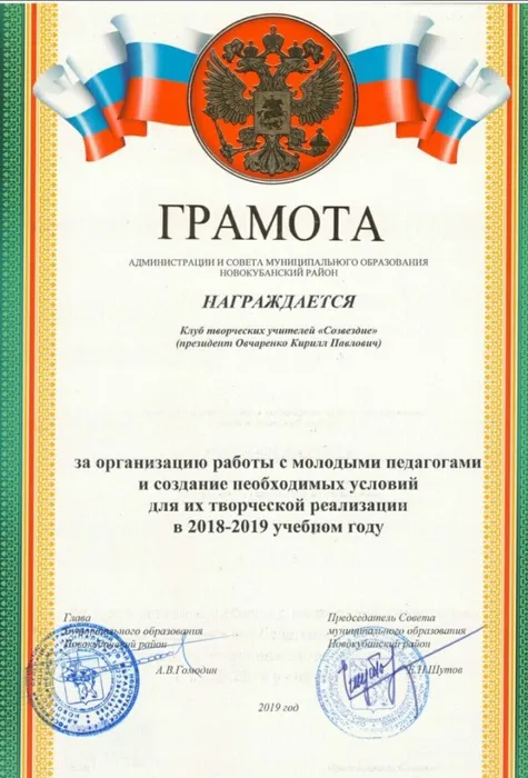 Клуб творческих учителей "Созвездие" при управленииобразования администрации муниципального образования Новокубанский район