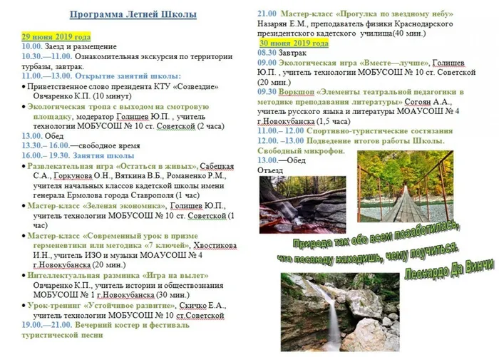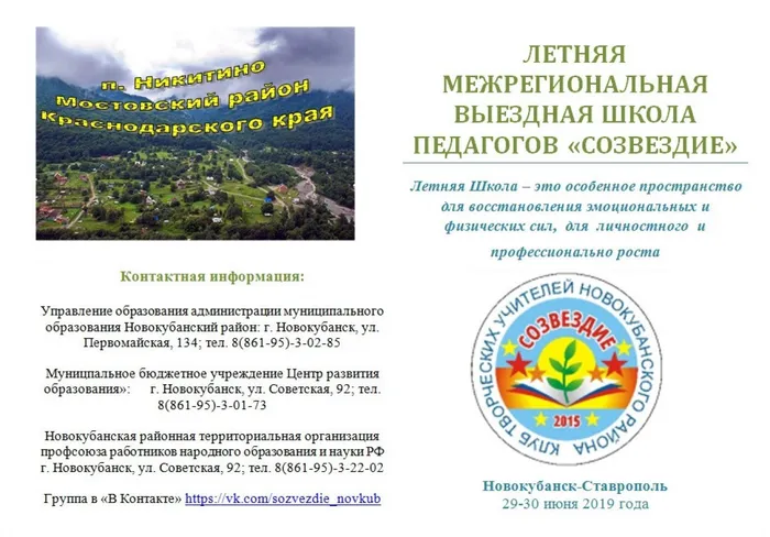 29-30 июня 2019 года на базе отдыха в п.Никитино прошла третья Летняя школа педагога. Она была организована нашим клубом при поддержке районной организации профсоюза. В ней приняли участие наши коллеги из Ставропольской кадетской школы им. генерала Ермолова.