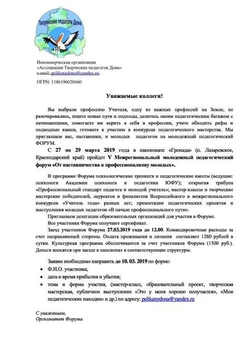 Мы приглашаем к сотрудничеству и участию и наставников, и молодых учителей. Ждем заявки до 10.03.2019 по адресу pelikanydona@yandex.ru