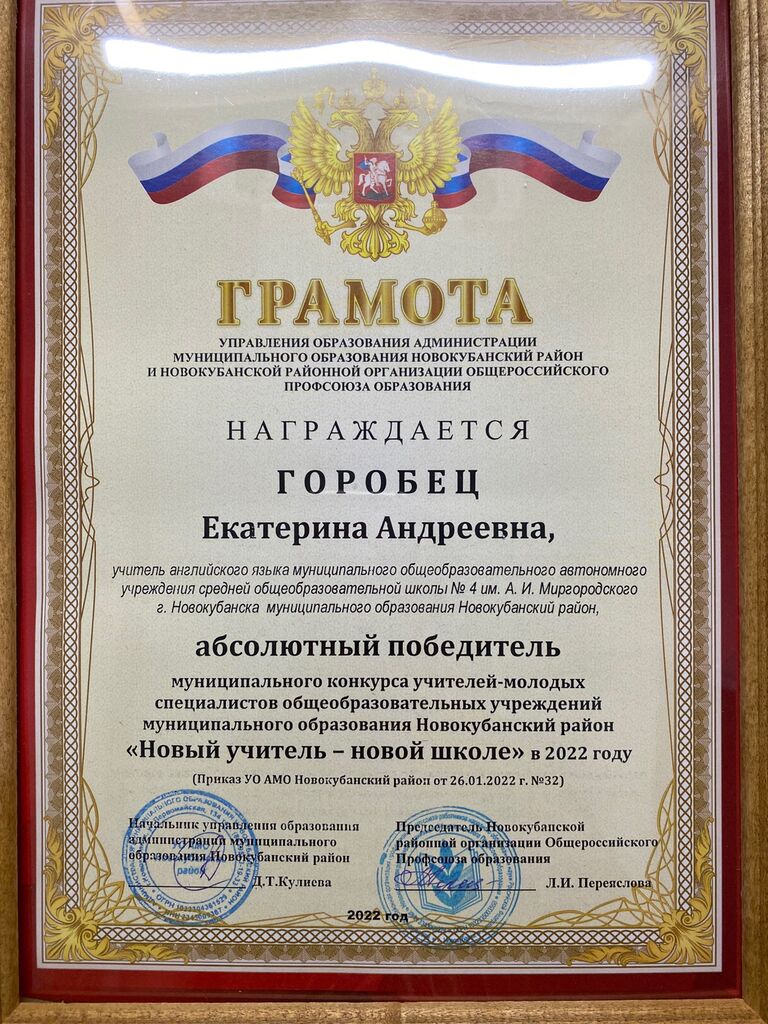 Член клуба "Созвездие" Горобец Екатерина Андреевна